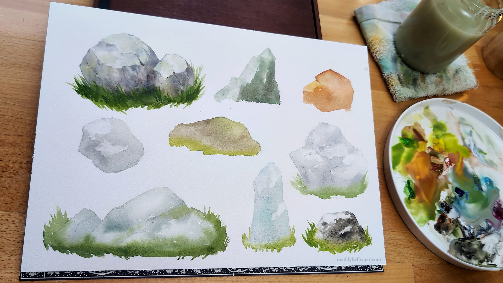 I wanted to share a painting exercise I've been enjoying lately! This method can be used to practice painting various topics and in this example I'm painting a sheet of rocks for practice. If you'd like to watch a video of the full process, you can find that here on my Youtube channel.